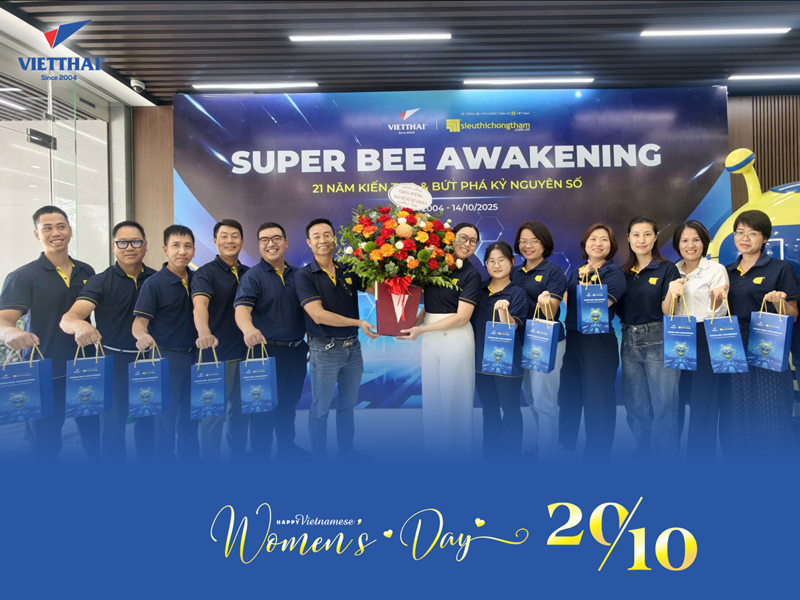 Ngày 20/10 hằng năm là dịp đặc biệt để tôn vinh những người phụ nữ Việt Nam – Những bông hoa xinh đẹp, kiên cường và tràn đầy yêu thương. Hòa trong không khí hân hoan ấy, Ban lãnh đạo Công ty Việt Thái đã gửi đến toàn thể chị em phụ nữ những lời chúc tốt đẹp, cùng những món quà ý nghĩa như lời tri ân chân thành dành cho một nửa yêu thương.